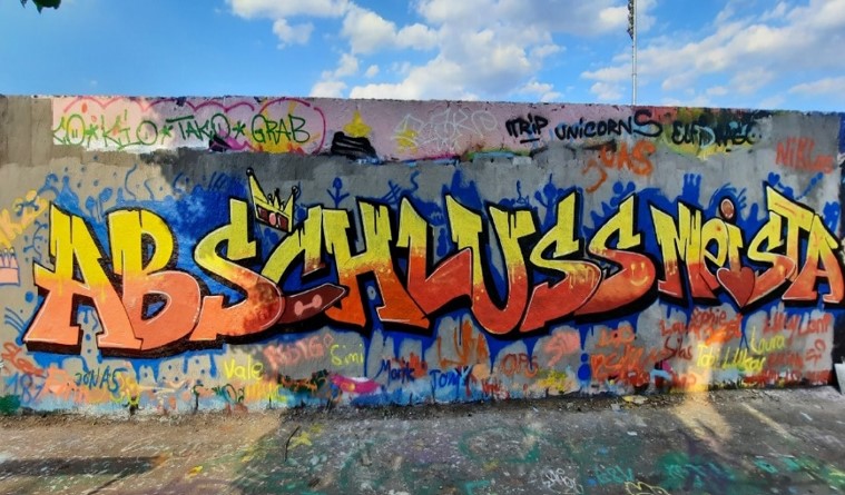Am Mittwoch und somit auch letzten erlebnisreichen Tag war der Escape Room angesagt. Wir wurden in vier Gruppen aufgeteilt, damit wir gleichzeitig in verschiedenen Räumen die Rätsel lösen und zum Ausgang kommen konnten. Die einen waren bei den Henkern, die anderen beim Checkpoint Charly, ein paar rätselten bei den Pharaonen und der Rest verbrachte eine Nacht in Hongkong. Von jedem schmerzten die Füße wegen Frau Rosenstiels Tempo, aber es ging sofort nach der Mittagspause in der Innenstadt zu einem Graffitiworkshop. Es war unfassbar warm, weshalb sich die Führung ein wenig in die Länge zog, aber interessant war es trotzdem. Im Anschluss durften wir ein gemeinsames Graffiti kreieren. Wir entschieden uns für das Wort „Abschlussmeista“, natürlich passend zu unserem Abschlussmotto. Mit rasantem Tempo fuhren wir mit der U-Bahn wieder ins Hotel, um uns zu stärken, denn anschließend ging es in den Club „Matrix“. Es war ein schöner Abschluss, der anschließend mit einem Döner um Mitternacht vervollständigt wurde.
