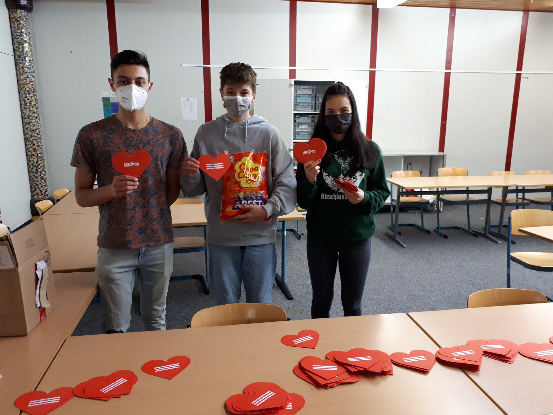 Somit verschönerten und versüßten unsere Klassensprecherinnen und Klassensprecher auch in Corona-Zeiten den Valentinstag!
