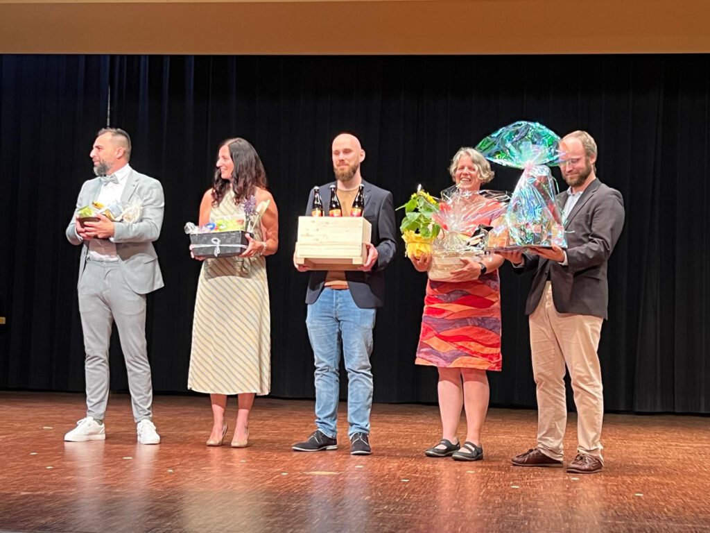 Absolventen einen Preis: Max Buhl, Lukas Heinzmann, Ronja Leibach und Lilian Graf.