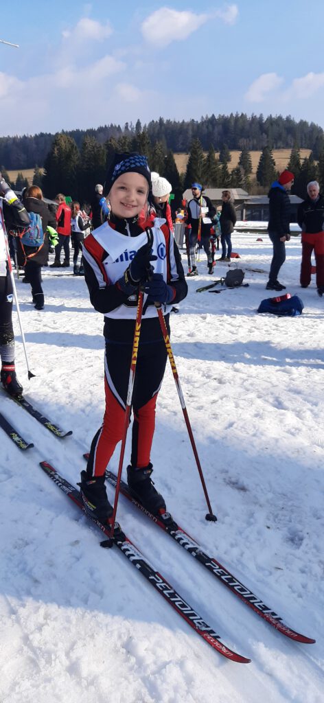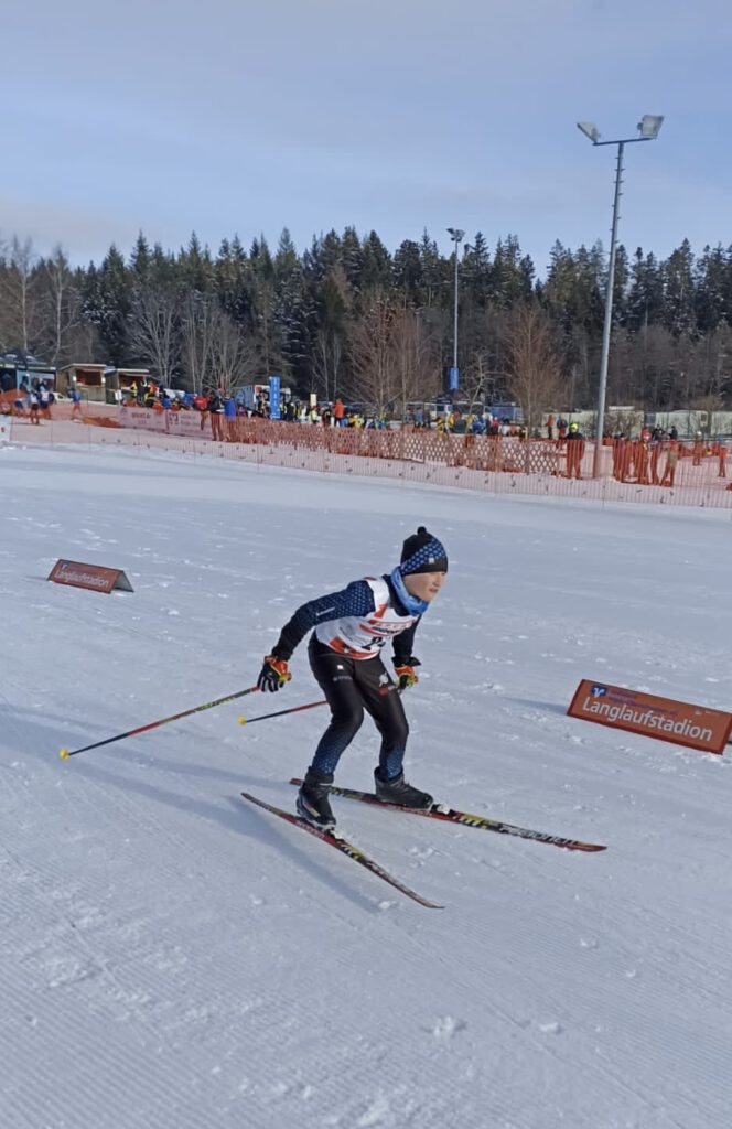 Ich bin durch meine Verwandten zum Langlauf gekommen und mache seit etwa 6 Jahren Langlauf. Langlauf ist mein Hobby und meine Lieblingstechnik ist Skating. Meine Ski werden von meinem Vater oder von meinem Trainer gewachst. Ich trainiere 3-4 mal in der Woche im Winter meistens in Schönwald und im Sommer auch in St. Georgen. Der Winter dieses Jahr ist besser als letztes Jahr, aber in der Corona Zeit war der Winter am besten. Das letzte Rennen verlief gut, aber der Kunstschnee war nicht so gut.