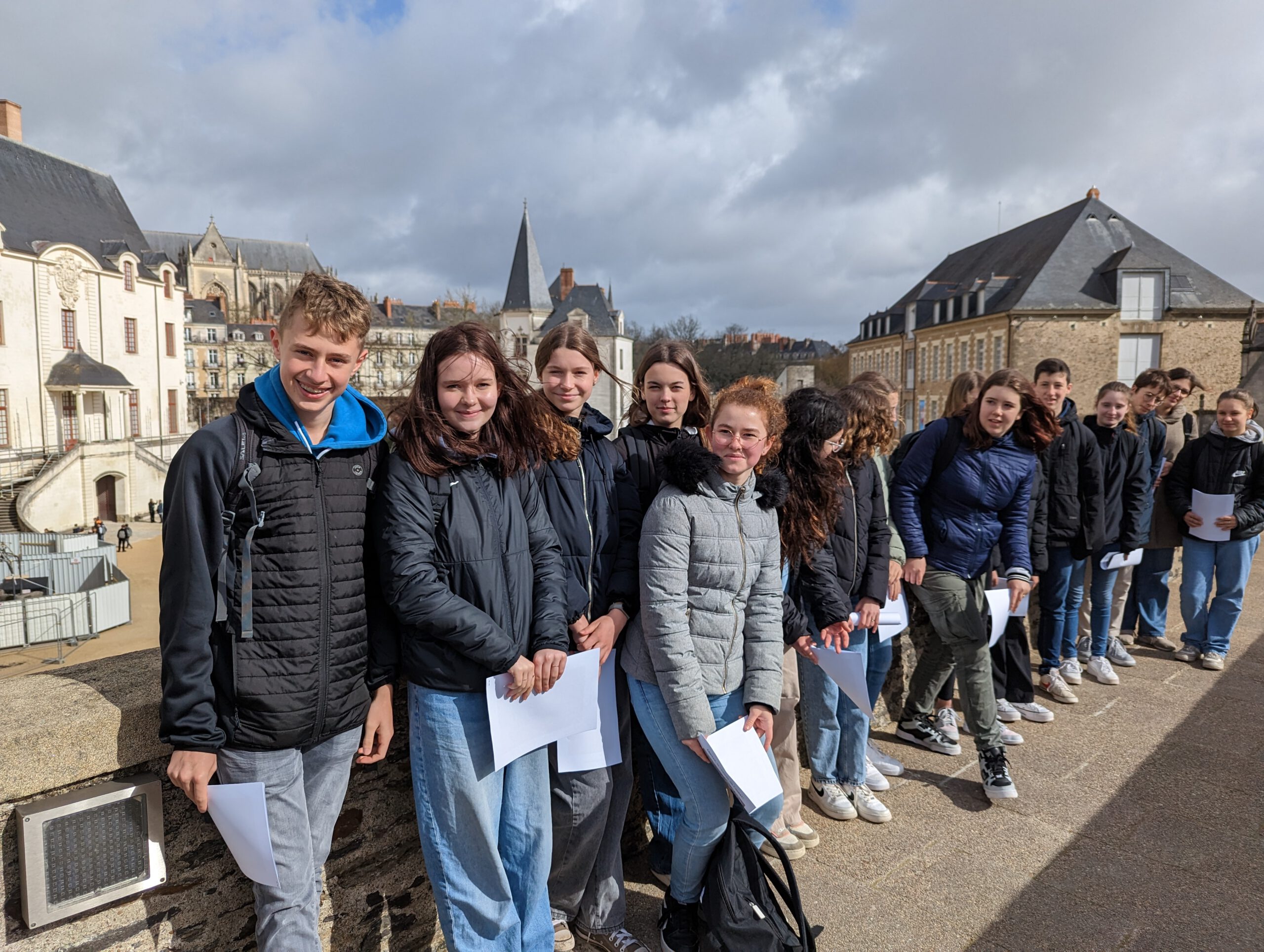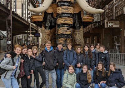 Der erste Tag in Frankreich bei einer anderen Familie begann für uns alle sehr schön. In der Schule haben wir uns alle wieder zusammengefunden und hatten auch die erste Stunde Zeit über die Ereignisse vom vergangenen Abend zu reden. Dann ging es mit einem gemieteten Bus nach Nantes. Ein Lehrer der Schule hat uns als Führer begleitet uns hat uns wirklich schöne Orte von Nantes gezeigt wie zum Beispiel den Botanischen Garten oder auch Das Schloss der Herzöge der Bretagne. Unsere Austauschpartner hatten sogar eine Überraschung für uns. Diese bestand darin das wir den riesigen bekannten selbst gebauten Elefanten in den Machines de l’Ile hätten reiten dürfen. Allerdings ging das wegen des Wetters nicht und als Entschädigung haben wir dann das dazugehörige Museum besichtigt. Dort wurden die tolle technische Werke vorgestellt und wir waren wirklich alle begeistert. Nach einem langen Tag ging es dann aber auch schon wieder zurück nach Legé, wo wir mit unseren Austauschschülern wieder nach Hause sind.