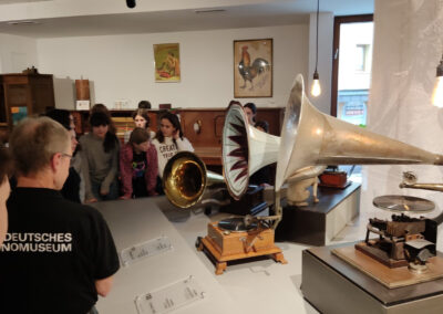 Am Abreisetag verbrachten die Gäste den Vormittag nach der Verabschiedung in der Schule im Phonomuseum. Bei zwei Führungen in Begleitung von Herrn Disch informierten sich alle über die Entwicklung der Phonoindustrie vor Ort. Bevor der Zug am frühen Nachmittag Richtung Straßburg und Nantes abfuhr, verbrachten die Schüler mit ihren Partnern noch die letzte gemeinsame Zeit beim Pizzaessen in La Galleria in Begleitung von Herrn Furtwängler und den beteiligten Lehrern. Dann traten sie die lange Heimreise an.