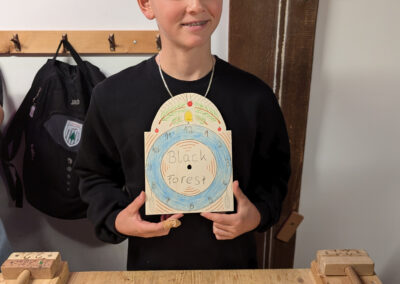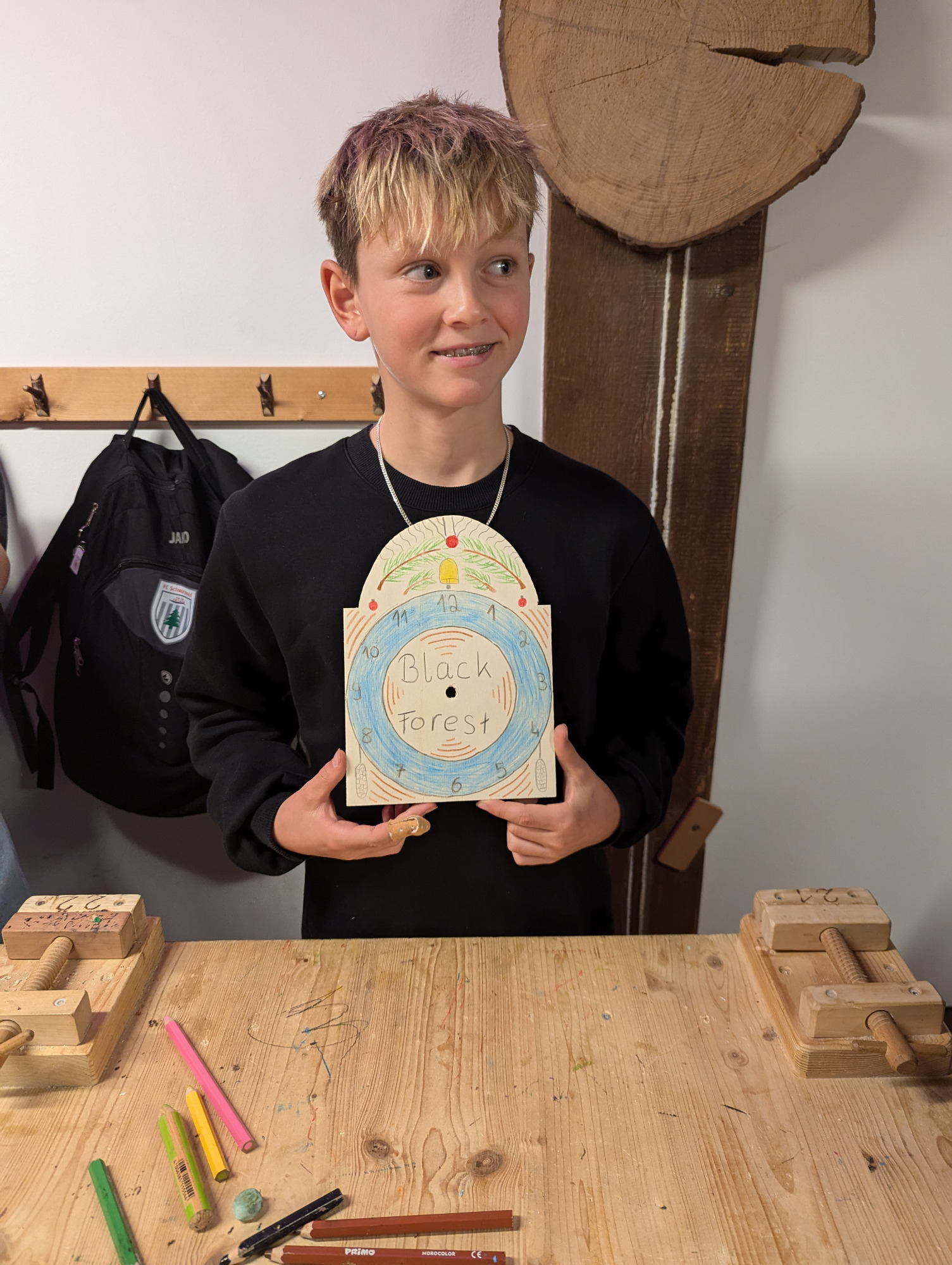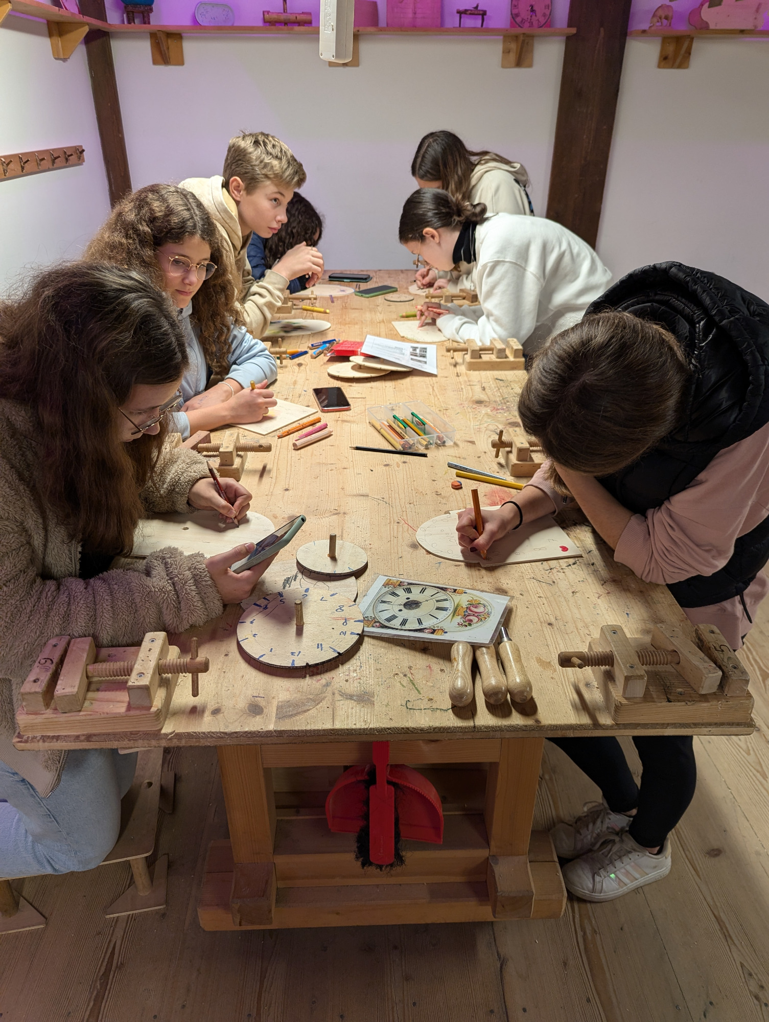 Am Donnerstag fuhr die Austauschgruppe mit Frau Schneider in den Schwarzwald und lernte bei einem Stopp im Uhrenpark Eble die Funktionsweise einer Kuckucksuhr kennen. Im Shop wurde ausgiebig gebummelt und nach Souvenirs Ausschau gehalten. Den Nachmittag verbrachten wir in den Vogtsbauernhöfen. Dort stellten die Schüler nach einer Führung in zwei Gruppen durch die schönen Häuser selbst eine Uhr her und gestalteten das Uhrenschild in einer Werkstatt. Ein tolles Produkt durfte mit nach Hause genommen werden.