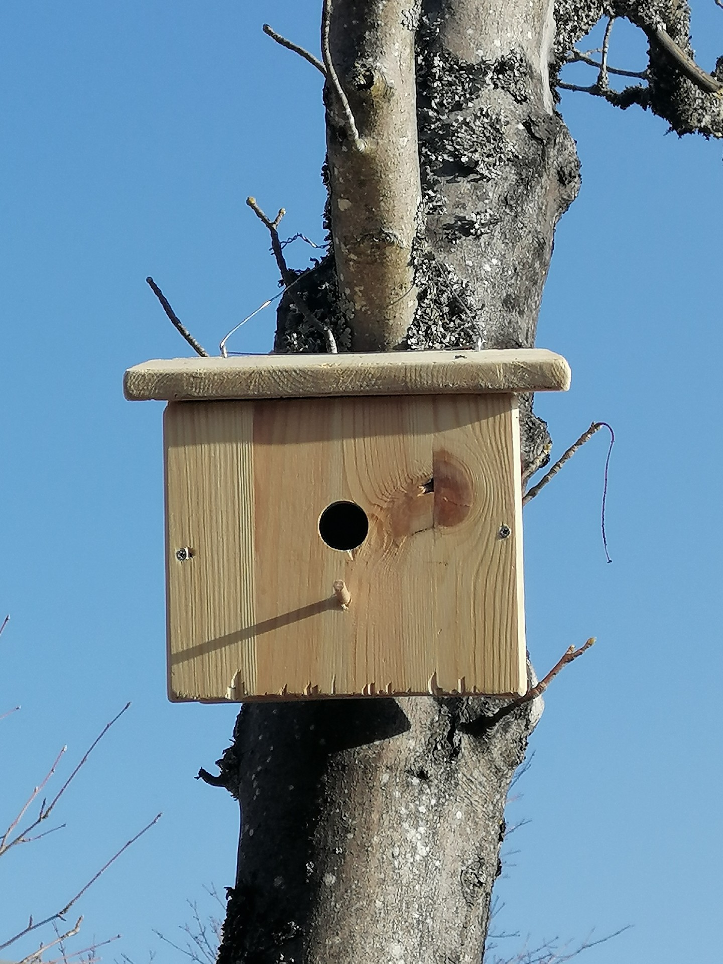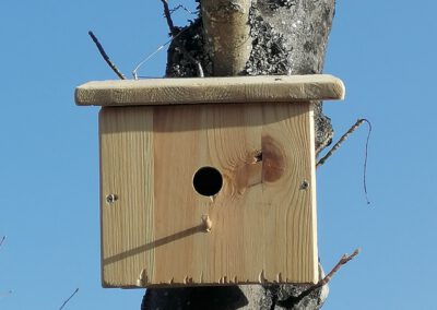 Wir, die Garten-AG, haben heute zusammen mit Herr Linsler Vogelhäuser aufgehängt. Dabei haben wir die Vogelhäuser überall rund um die Schule verteilt.
