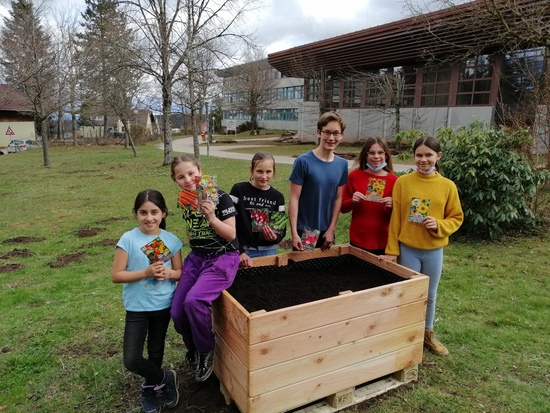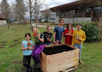 Die Garten-AG bepflanzt die Hochbeete