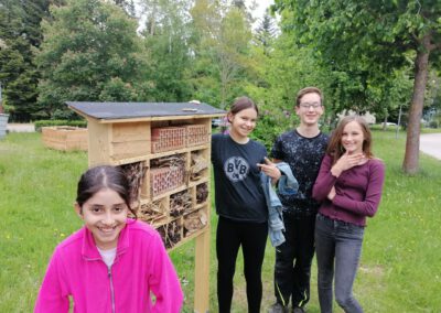 Die Garten-AG stellt ein Insektenhotel auf