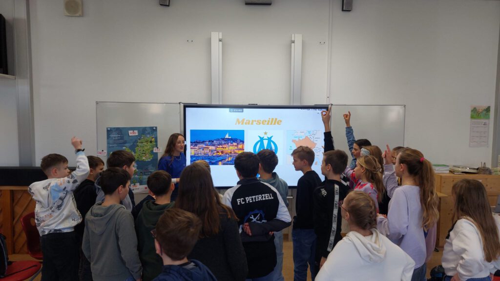 Für das Fach Französisch konnte wieder eine Dozentin des „FranceMobil“ engagiert werden. Dieses Programm wird vom Deutsch-Französischen Jugendwerk (DFJW) in Zusammenarbeit mit der Französischen Botschaft angeboten. Junge französische Muttersprachler besuchen dabei Schulen und vermitteln mit Spielen und interaktiven Methoden einen Eindruck der französischen Kultur und wecken die Lust auf Fremdsprachenlernen und internationale Erfahrungen. Im Anschluss daran erhielten die SchülerInnen auch in diesem Fach Informationen zu den Themen und Anforderungen durch die Fachlehrer.