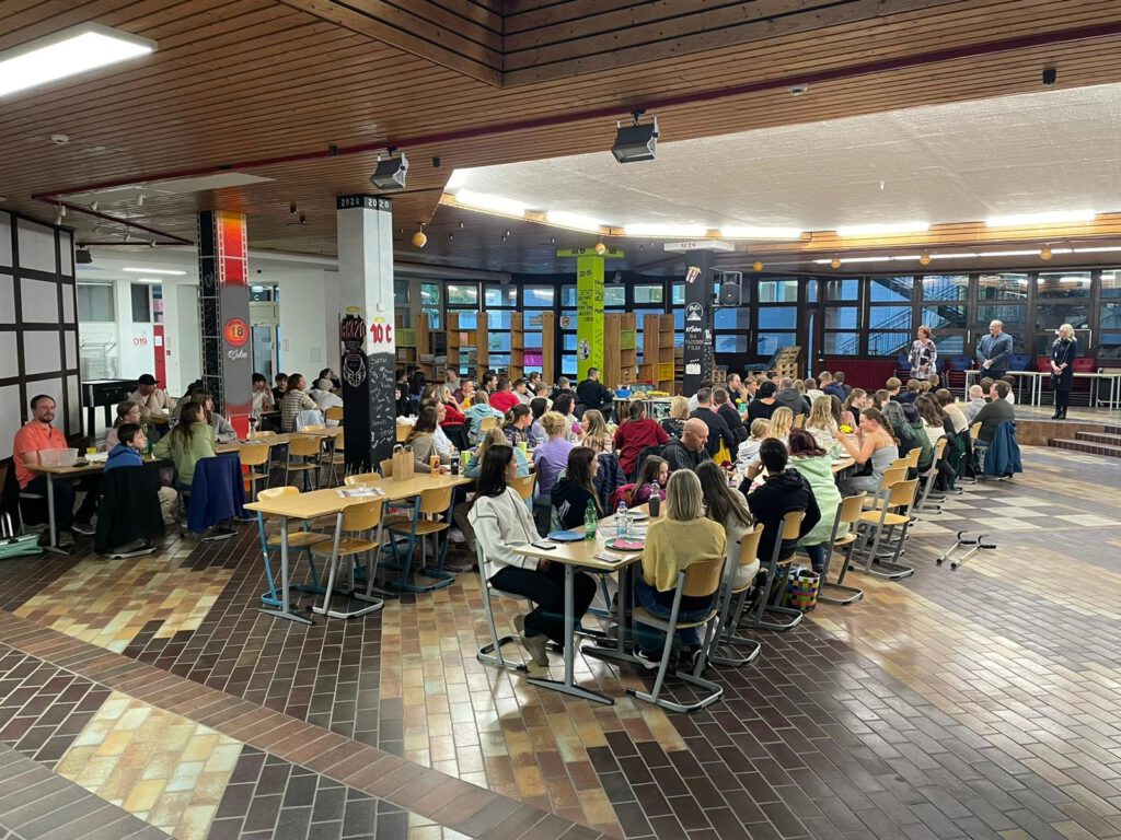 Am Abend trafen sich alle Beteiligten in der Aula der Schule, um das durch die Eltern gesponserte Buffet, zu genießen, zu quatschen und alte Bekanntschaften wieder zu treffen.