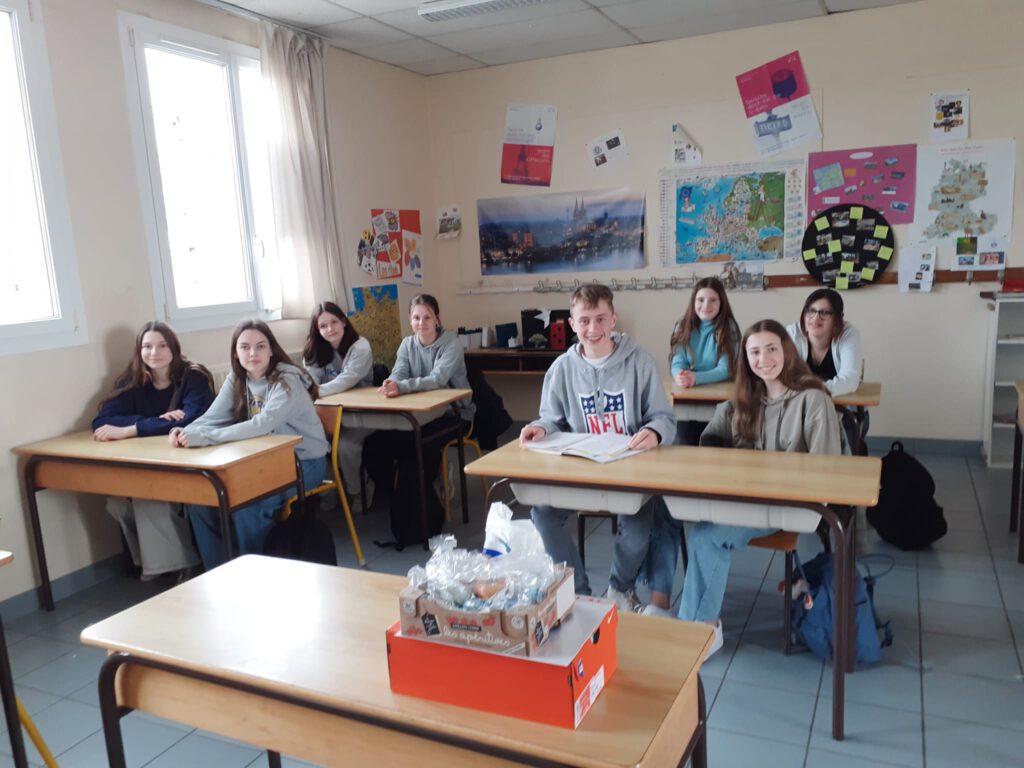 Nach dem Essen sind die wir zu einem Supermarkt gelaufen. Dort hatten wir Freizeit und konnten etwas rumstöbern. Um 14:00 Uhr ging der Unterricht weiter . Zusammen mit der 3e (Kl. 9 in Frankreich) hatten wir Deutsch. Wir haben die Unterschiede von Ostern zwischen Deutschland und Frankreich kennengelernt. Ausserdem haben wir zusammen Ostermemory gespielt .