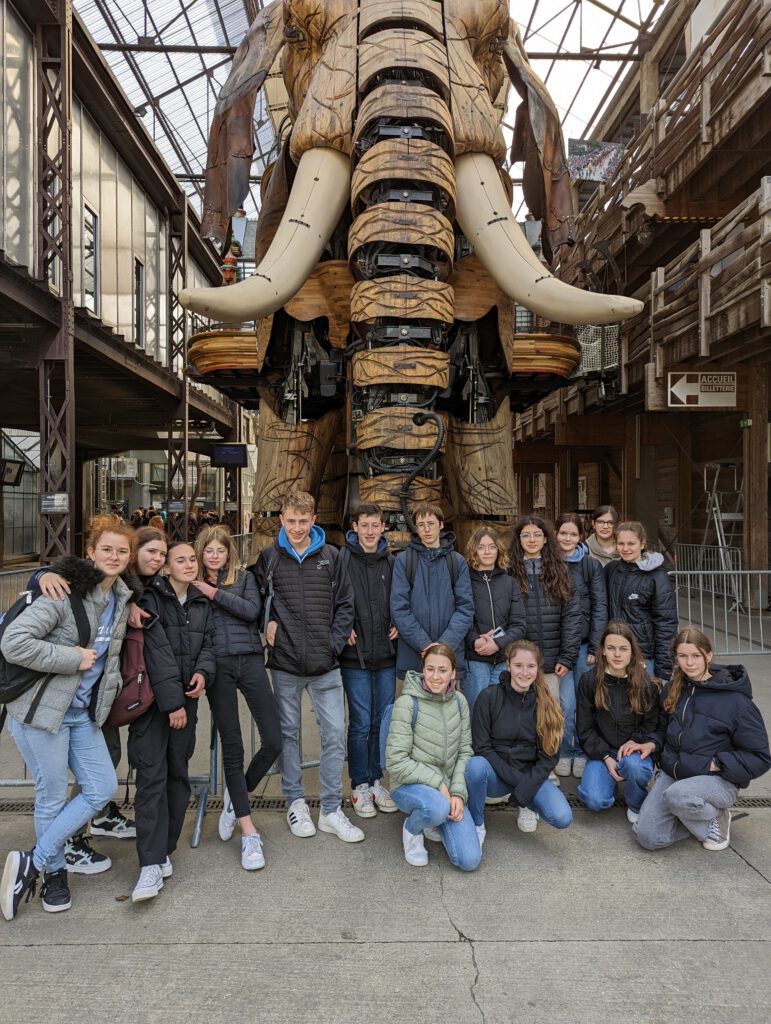 Der erste Tag in Frankreich bei einer anderen Familie begann für uns alle sehr schön. In der Schule haben wir uns alle wieder zusammengefunden und hatten auch die erste Stunde Zeit über die Ereignisse vom vergangenen Abend zu reden. Dann ging es mit einem gemieteten Bus nach Nantes. Ein Lehrer der Schule hat uns als Führer begleitet uns hat uns wirklich schöne Orte von Nantes gezeigt wie zum Beispiel den Botanischen Garten oder auch Das Schloss der Herzöge der Bretagne. Unsere Austauschpartner hatten sogar eine Überraschung für uns. Diese bestand darin das wir den riesigen bekannten selbst gebauten Elefanten in den Machines de l’Ile hätten reiten dürfen. Allerdings ging das wegen des Wetters nicht und als Entschädigung haben wir dann das dazugehörige Museum besichtigt. Dort wurden die tolle technische Werke vorgestellt und wir waren wirklich alle begeistert. Nach einem langen Tag ging es dann aber auch schon wieder zurück nach Legé, wo wir mit unseren Austauschschülern wieder nach Hause sind.