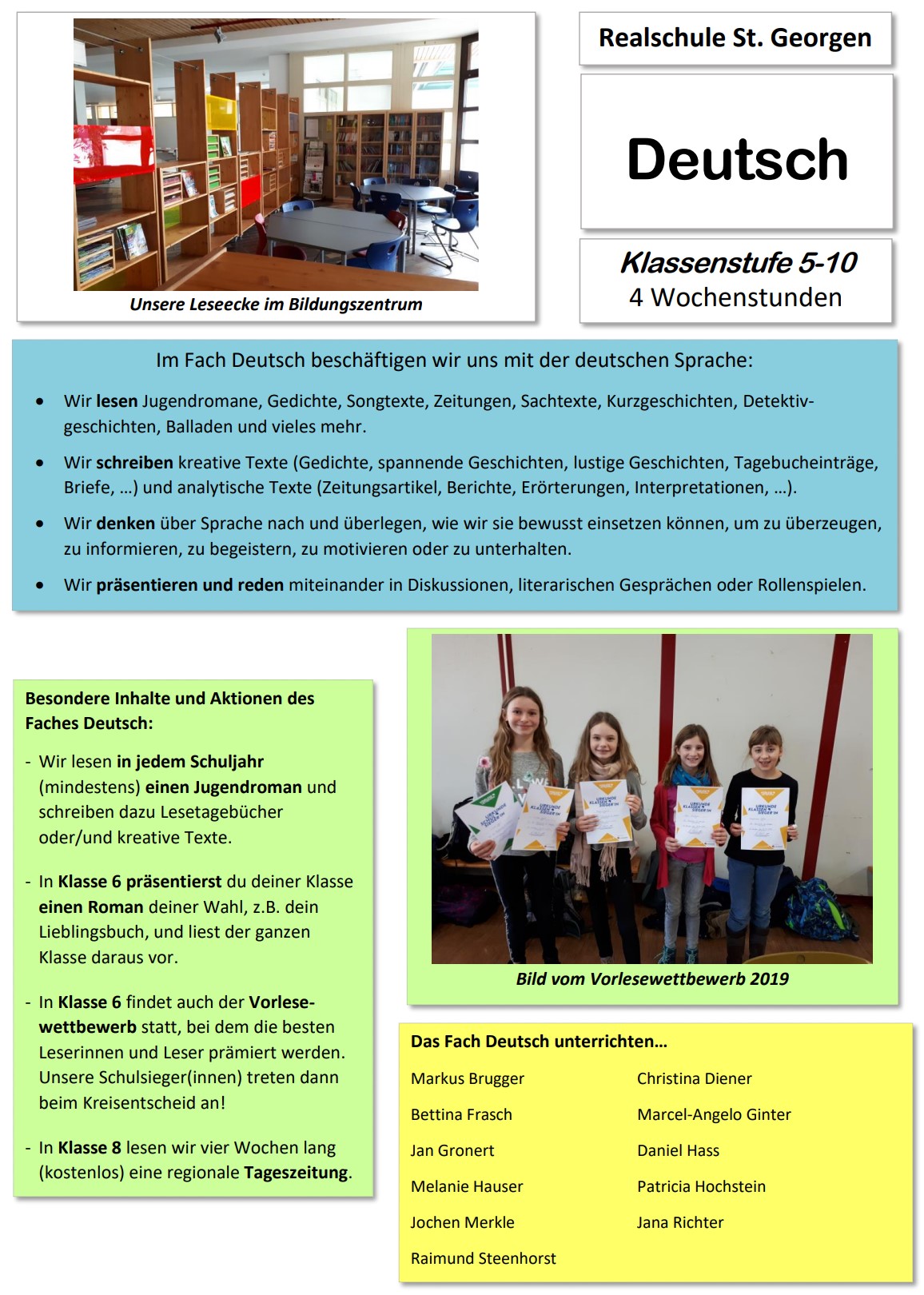 Hier finden sich alle Informationen und Wissenswertes zu den jeweiligen Fächern.