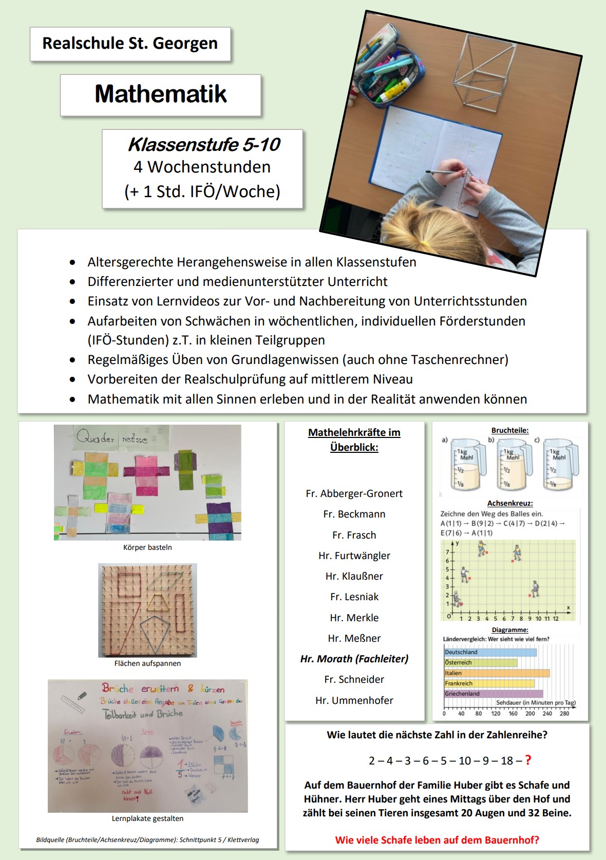 In vielen alltäglichen Situationen des Lebens müssen wir Menschen auf logisches Denken und auf Problemlösestrategien zurückgreifen, was in erheblichem Maße im Mathematikunterricht an der Realschule vermittelt wird.